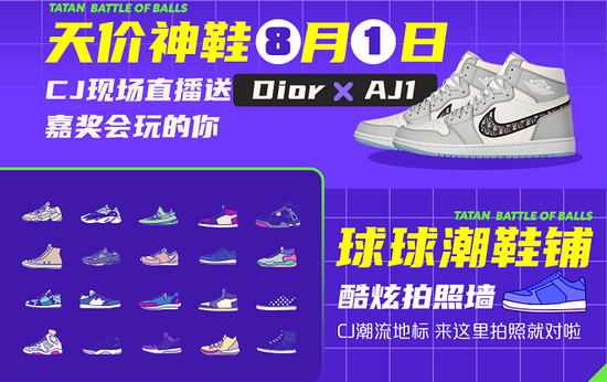 现在,今年最具牌面的球鞋之一,奢华至极的联名规格,全球限量8500双,周杰伦、王俊凯等明星纷纷上脚炫鞋的Dior x AJ1 也来啦!8月1日14:00 ,《球球大作战》抖音官方直播间将在ChinaJoy现场开播,送出终极大奖——Dior x AJ1 !