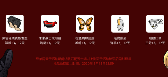 5. 兄弟同盟一经组成将成为一个活动同盟小组,一荣俱荣一损俱损,兄弟同盟于活动期间组队进行常规赛匹配至少五十场,于活动结束后可一同获得兄弟同盟大礼包。