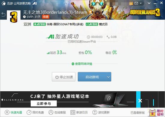 免费试玩活动已经开启,大家可以在免费期间前往Steam下载试玩。迅游加速器完美支持《无主之地3》联机加速,有效确保各位玩家网络环境稳定,体验流畅的夺宝之旅。迅游通过动态路由调整、全运营商的节点部署、7×24小时全网络动态监控、测速和数据中转等技术,有效解决玩家在网游中遇到的延时过高、登录困难、容易掉线等问题。