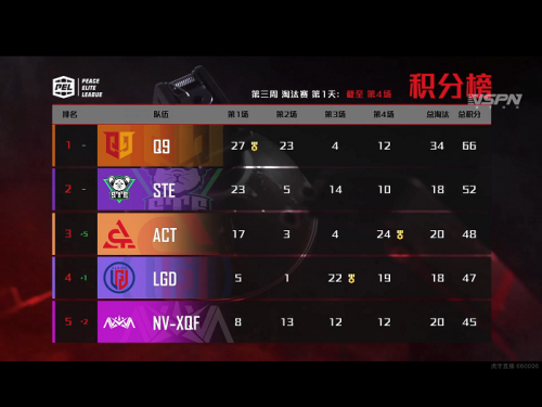 常规赛第三周第一个比赛日,情久凭借前两局比分的大幅优势,排行榜首直接晋级第三周决赛,ACT、LGD、虎牙战队STE和NV-XQF也拿到直通车车票。第一周周冠军虎牙战队4AM和上周刷新S2单日最高积分的YQL在今日都表现平平,与其他战队一起进入明日的厮杀,他们究竟能不能触底反弹重回巅峰呢?看PEL上虎牙,明日我们一起揭晓!