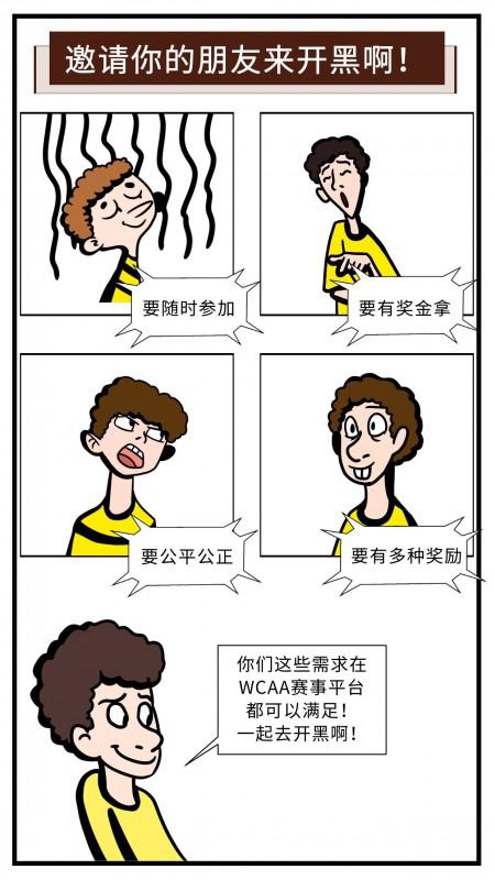 如果你有一台电脑或者一部手机,又有那么一点喜欢竞技类游戏,碰巧身边又有几个臭味相投志同道合的朋友!那么恭喜你,你获得了一份来自WCAA赛事平台的offer。