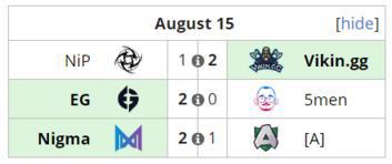 结束了OMEGA联赛第二天的征程。在小组赛第二天的比赛中,Vikin.gg让一追二逆转了NiP。EG二比零大胜5men,吹响了美洲军团进攻的号角。Nigma二比一战胜Alliance,重演了PIT联赛的精彩决赛。