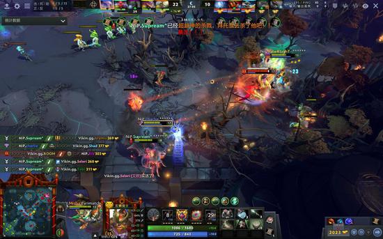 23分钟,有迈达斯之手的美杜莎在中期选择参战。NiP打算推进天辉的中路一塔,美杜莎顶在前排进行防守,小小在侧面吃了个隐身神符被NiP集火,复仇之魂一个移形换影骗了虚空假面的大招,最后Vikin.gg打了NiP一个三换四,美杜莎和小小存活了下来。