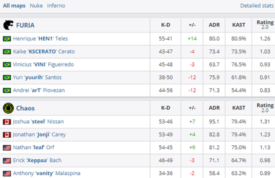 Chaos 2-0 FURIA(Nuke 16-11;Inferno 22-19)