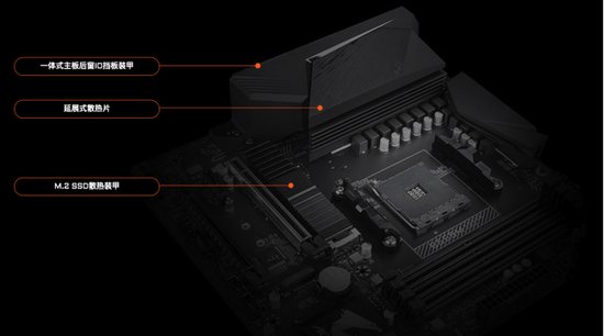其中,M.2 SSD PCI-e 4.0插槽不仅是支持第三代锐龙处理器直连PCI-e 4.0×4 M.2固态硬盘,带来了更强的扩展性;其覆盖散热装甲,也能让硬盘始终在适宜的温度下稳定运行。