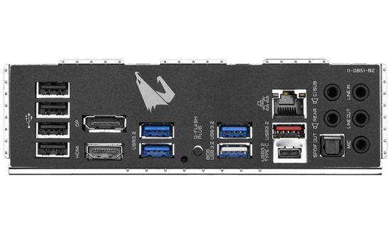 除此之外,在易用性部分,技嘉B550M AORUS PRO“小雕”主板在I/O面板上加入了Q-FLASH PLUS按键,玩家只需要把下载好的BIOS放在U盘里,插在标有BIOS的USB接口上,就可以通过Q-Flash Plus功能,在没有处理器和内存的情况下,也可以一键升级主板的BIOS,让玩家后期无忧升级对AMD锐龙4000系列处理器的支持,非常方便。