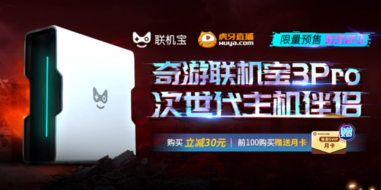 9.5日晚21:00起,奇游联机宝3Pro开启限量预售,天猫旗舰店售完即止。购买购裸机立减30元并赠送周卡,而前100位购买的用户还可以获得月卡一张,限时优惠,硬核主机玩家必备!