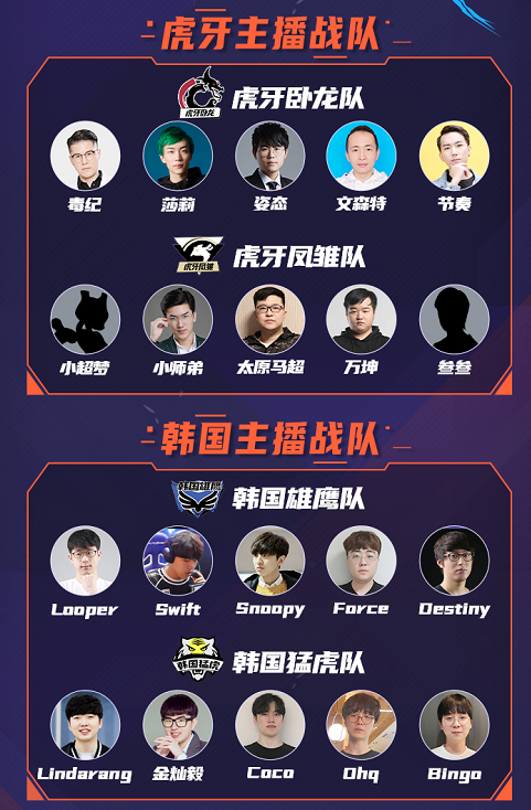 此次参与中韩对抗赛的明星主播与前职业选手: