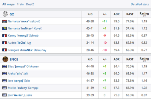 G2 0-2 ENCE(Train 16-19;Dust2 10-16)