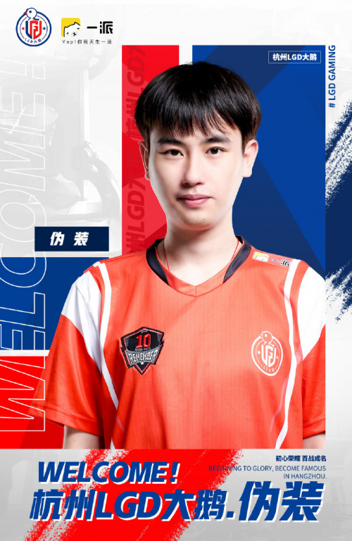 另一位是联盟元老级明星选手——杭州LGD大鹅.伪装(原EDGM.伪装,中文名:朱思远),伪装作为从第一届KPL就开始征战的选手,在赛场经验是极为丰富的,他曾用名Jungle、Wish,先后服役于武汉ES、重庆QG、上海EDG.M,曾获得2016年冠军杯总冠军!他的加入,对于杭州LGD大鹅体系的多样化有着极大的加持。