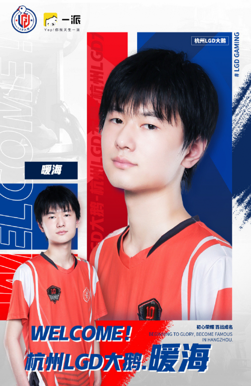 第一位是从RW战队转会的KPL五杀收割机——杭州LGD大鹅.暖海(原RW侠.Hmanlou,中文名:郭泽恩),如今他再次改回出道ID,初心不变,期待他在新赛季的精彩表现!