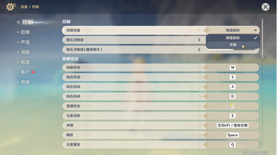 接下来讲一下具体的设置方式吧。首先需要先呼出菜单,点击“齿轮图标”,在“控制”中的“控制设备”中将选项改为“手柄”这样手柄才能正式生效。