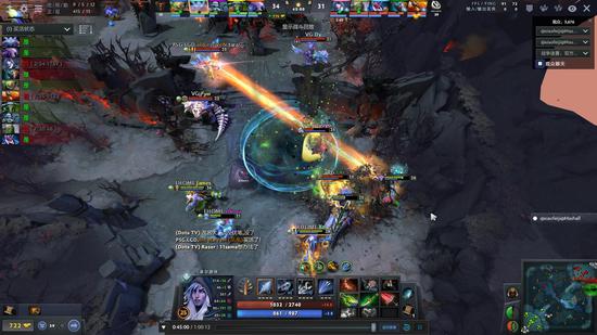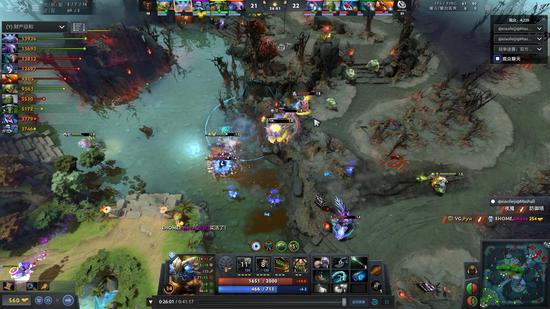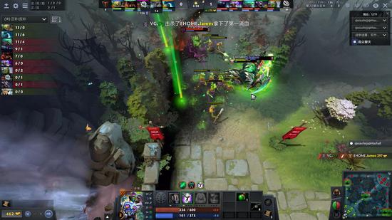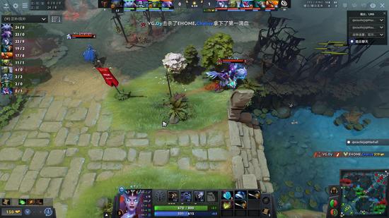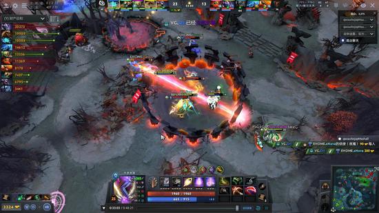 31分钟,VG中路先手EHOME,末日大到关键英雄DS,VG亏了一波2换1,35分钟,EHOME带盾奶,VG继续开团,幽鬼开大分割战场,DP一个大追死了末日。