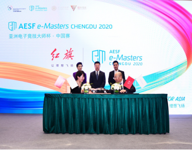 9月22日, AESF e-Masters 亚洲电子竞技大师杯·中国赛落地成都高新区签约仪式暨赛事首席官方合作伙伴中国一汽红旗品牌签约发布仪式在成都天府新城会议中心举行。成都市委宣传部副部长师江、高新区副主任陈洪涛、一汽红旗汽车销售有限公司总经理陈旭、副总经理杨海岚、阳光媒体集团董事长杨澜、AESF亚洲电子体育联合会总干事刘钊等领导、嘉宾到场出席仪式。