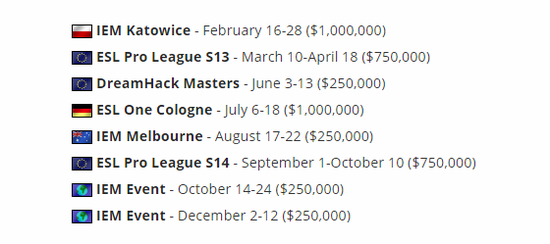 下面是ESL职业巡回赛2021年的临时日程表(日期可能会有变化):