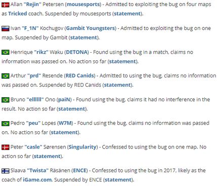 当时,ESIC提供了一个直至9月13日的认罪期,让过去使用过这一bug的教练有机会主动认错。预计周一的报告将公布未公开的认罪教练名单。