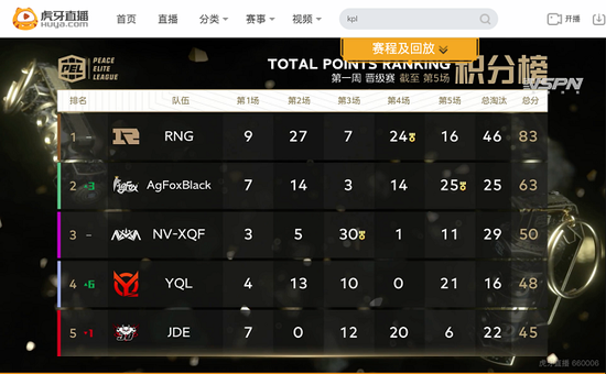9月25日PEL开赛首日,虎牙军团出师大捷!4AM旗开得胜吃下本赛季第一块蛋糕!老牌豪强RNG甩开第二名20分,以83分的成绩位列榜首,S2总冠军NV-XQF同样拿下一块蛋糕。RNG和NV-XQF率先进入周决赛,成为首个百万大奖的有力角逐者!4AM、STE、ELG今晚将继续拼搏,为荣誉而战!