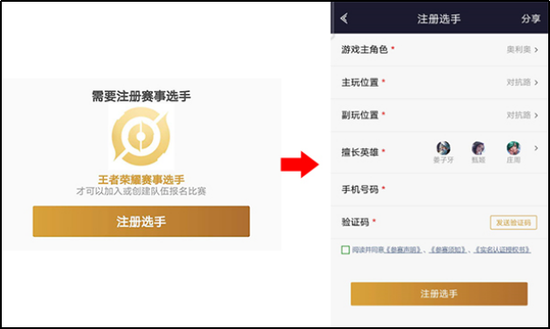 1、注册电竞选手,填写资料完成注册,注意一下,报名注册的账号和比赛的账号需要是同一个哦。