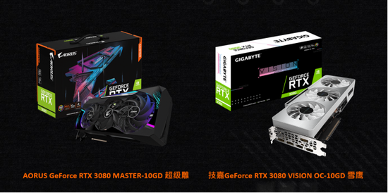 对于消费级电子硬件来说,除了性能外,用户最看重的莫过于外观了,尤其是显卡,绝对是玩家机箱中最重量级的个性象征。技嘉AORUS系列显卡就非常注重高性能与时尚外观的结合,随着RTX30系列显卡的上市就推出了两款重磅新品:技嘉 AORUS GeForce RTX 3080 MASTER-10GD 超级雕、技嘉 GeForce RTX 3080 VISION OC-10GD 雪鹰(以下简称RTX 3080 超级雕和雪雕)。这两款新品定位高端,并采用全新设计的外观,并同时具备优秀的性能素质,专为追求高端与个性化玩家打造,下面一起了解下吧。