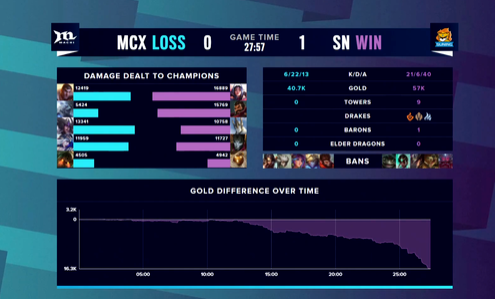大龙坑前,MCX过分集火加里奥并未成功击杀,浪费了大量的输出,被直接杀掉四人,大龙成功被SN拿下,手握三条小龙和大龙的SN经济领先一万一。