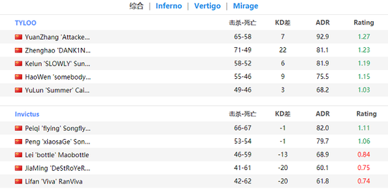 TYLOO 2-1 IG(Inferno 16-14;Vertigo 13-16;Mirage 16-4)