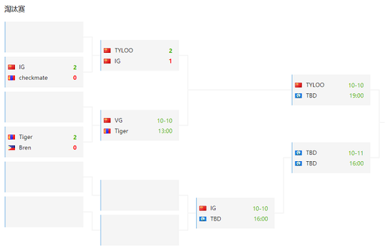 在今日的前两轮对决中,IG与Tiger分别用硬实力几乎击败对手晋级下一轮。而在今日IG与TYLOO的中国内战之中,两支战队在前两张地图中不分秋色比分持续焦灼,TYLOO在前两张地图均在上半场落后的情况下努力追分,双方将比赛拖入图三。但决胜图IG的进攻并不理想,TYLOO的稳定一换多在残局上也是稳定发挥,难以找到机会 的IG上半场仅仅取得3分,巨大的分差最终也是4-16不敌TYLOO落入败者组。