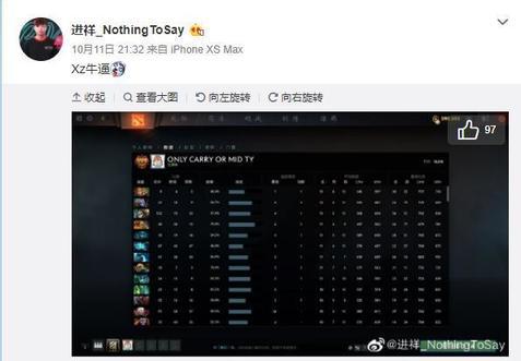 PSG.LGD战队的中单选手NothingToSay将自己的另一账号的天梯分打到了10010分,他也在微博上发布了这一消息。