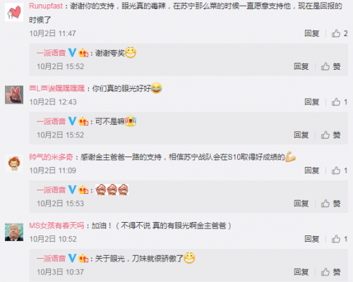 国内知名电竞娱乐互动平台的一派APP,其实早已看出SN战队的“雄狮力量”,与SN战队签约合作,SN选手全员入驻一派APP,成为明星陪练官,为一派用户提供职业级别的陪练体验。看着SN战队在世界赛上一次次的进步,不少网友都大赞一派APP眼光太好!