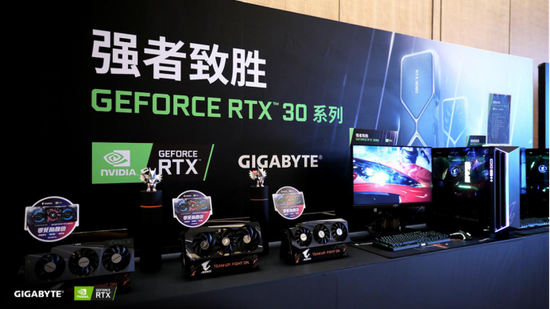 在“强者至胜”NVIDIA&技嘉科技 GeForce RTX™ 30系列网吧行业峰会的技嘉全家桶产品展示体验区,现场展示了技嘉针对网吧及电竞酒店主打的GeForce RTX™ 30系列显卡和技嘉全家桶高性能游戏样机等,特别是技嘉GeForce RTX™ 30系列显卡备受在场网吧业主及电竞酒店投资人瞩目,让他们在近距离感受技嘉全家桶产品特色和性能的同时进行了深入沟通,共同探讨网吧/电竞酒店行业新方向。