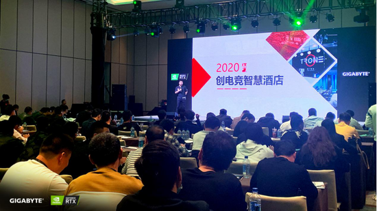 最后是创电竞 天竞云杭州网络科技有限公司副总经理 蒋宇钦进行《2020创电竞智慧酒店》主题分享。他表示电竞酒店作为新型的酒店形式,坚持“电竞为酒店赋能”,以“玩家需求”为中心,专注“竞技”+“住宿”核心体验模式,链接娱乐、赛事、文化等多个方面,实现电竞化、智能化、网红化、社交化的酒店居住体验模式。“创电竞”酒店是国内知名的竞技性连锁电竞酒店品牌,隶属于天天电竞(青岛)网络科技有限公司,通过多年电竞行业积累,探索电竞商业新模式。创电竞智慧酒店配备顶尖电竞设备,辅以智能家居,更有天天电竞CMEL赛事、大唐5G高新科技等为创电竞进行赋能,增强了游戏体验方面众多的竞争优势,可极大满足消费者的竞技体验;同时,创电竞成立的创电竞学院,将持续为酒店提供优秀的酒店管理人才,使创电竞具备了完善的运营管理体系。先进的网络技术和专业化的酒店管理,预测创电竞将在未来收获市场的高度认可,并收获一批高忠诚度的粉丝消费群体。创电竞酒店未来将打造成为天竞云旗下电竞酒店标杆品牌,目前全国加盟店100余家,重点分布在浙江、安徽、江西、湖南等地,年内酒店规划可达150家,所有门店均采用顶尖电竞设备,提供专业电竞服务。恰逢NVIDIA GeForce RTX™ 30系列发布,创电竞酒店将优先配备30系列显卡,继续与NVIDIA、技嘉一起创造更专业、更完美的电竞未来。