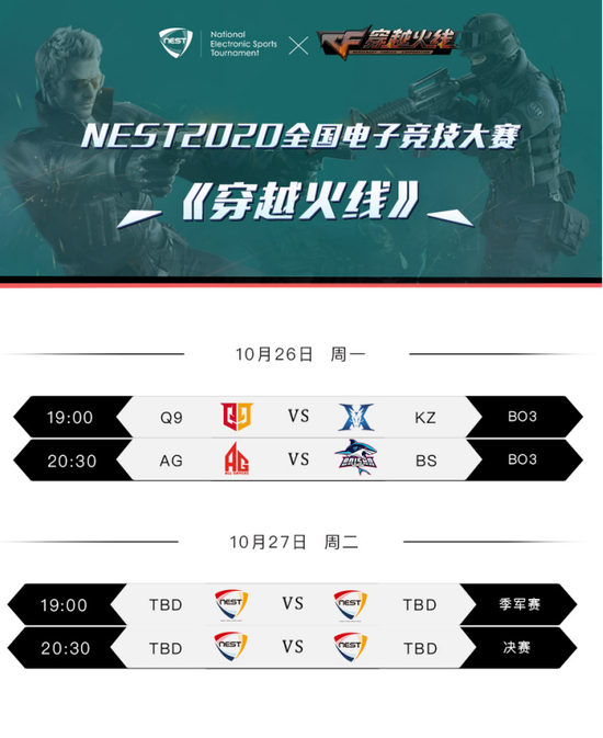 此前在经历为期12天的比赛后,AG、Q9、BS、KZ杀出重围晋级四强。而四支战队也将通过10月26日--27日最终两天的比拼决出最终王者登向属于他们的NEST冠军宝座。