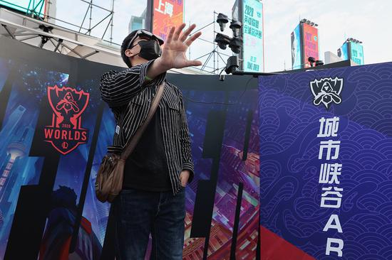 除此之外,活动现场还设置了AR设备观景台,可以欣赏到由东华大学服装与艺术设计学院视觉传达系的师生们共同创作完成的彩蛋。通过前沿的AR设备与技术,以虚拟效果呈现S10落地电竞之都的融合魅力。市民可以通过佩戴AR眼镜观赏巨龙降临东方明珠塔并与观看者互动,东方明珠也将呈现更多虚拟内容、赛事相关信息与观看直播,展现上海的电竞一面。