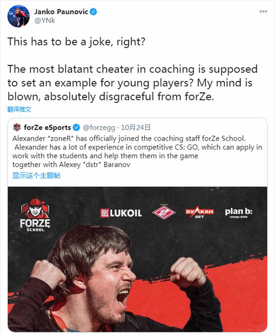 最初的起因是forZe宣布招入前Hard Legion违规教练zoneR,愤怒且不解的玩家们直接针对俱乐部开冲,甚至包括FaZe教练YNk在内都对此表示了抨击。经历了最初的一波非议后,forZe澄清表示zoneR仅是作为“试用教师”加入forZe青少年训练营。这是一个集教育与培养CSGO新秀为一体的项目,并不是青训队伍因此也不隶属于主力部队。在声明中forZe写到:“虽然zoneR犯下了可耻的错误,但我们还是决定给他一次改过自新的机会,毕竟他还是一名经验丰富的教练,后续一切工作都会在俱乐部管理层的监督下进行。”