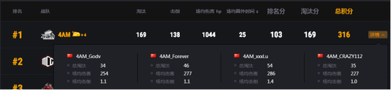 这一局比赛不仅展现出了队员出色的个人实力,多次以少打多以及在小规模交战的屡屡得势,也再次证明了GODV的强大指挥能力,最终4AM在决赛中获得了103分的高排名分,领先所有队伍。