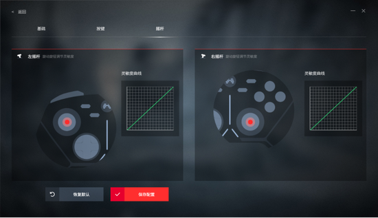 摇杆选项中,玩家在这里可以更清晰的看到当前摇杆的灵敏度。调节只需要转动摇杆上的旋钮,界面的灵敏度曲线就会即时产生反应。