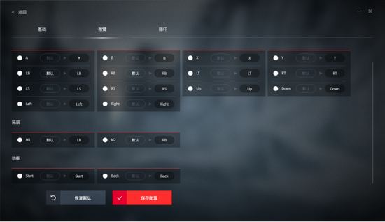 ※支持宏的按键为RB/LB/M1/M2四个按键