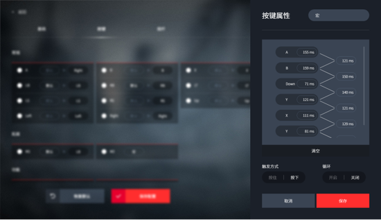 宏方面的设定也是非常的简便,将按键属性设置为“宏”后,像正常操作一样操作手柄即可进行宏的录制。不管是多复杂的操作,只要录制完毕后,一个按键就可以稳定触发。