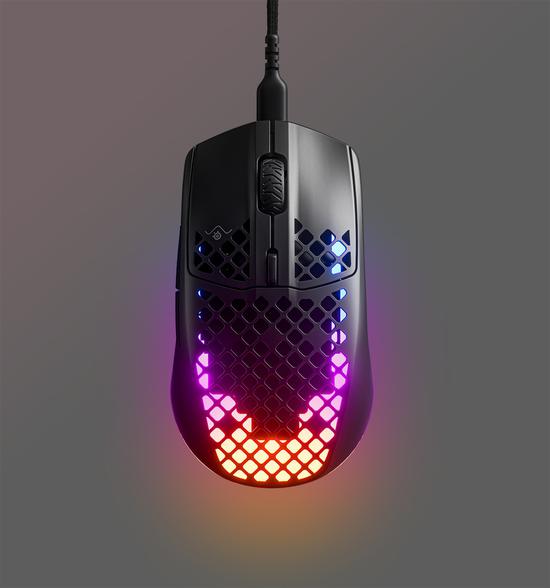 Aerox 3 是本次新品中的有线版本,它拥有诸多 Aerox 3 Wireless 鼠标相同的特性,如几乎相同的外观、IP54级别防水防尘能力、新的柔软编织线缆、PTFE材质脚贴、三区域RGB灯光、USB-C接口等。