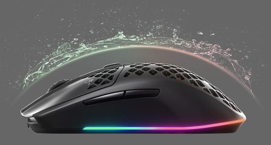 Aerox 3 Wireless 是首款通过IP54防护等级的游戏鼠标。它拥有一定的防水、防尘、防油等特性,赛睿AquaBarrier技术的采用使得鼠标看似裸露的电路板可以有效避免几乎所有常见环境问题带来的损坏。这样的防护性能对于采用打孔外壳设计的鼠标来说尤为重要。