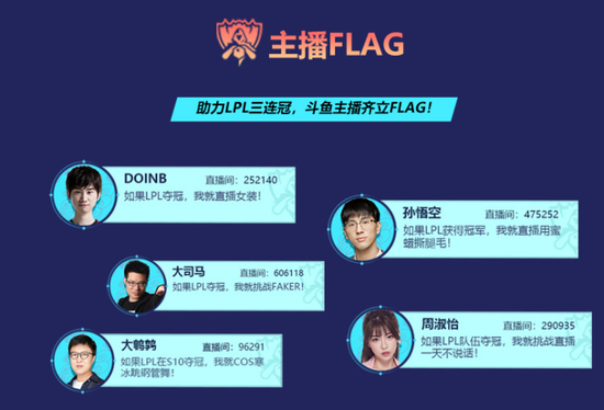 斗鱼主播立下flag,助力LPL夺冠S10!