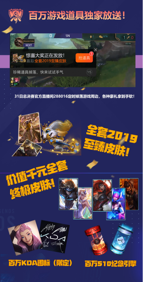 SN夺冠,掉落全套2019至臻皮肤