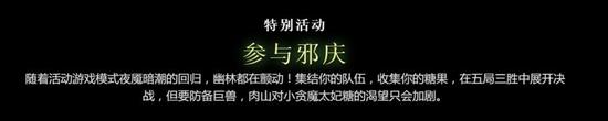 随着活动游戏模式夜魇暗潮的回归,幽林都在颤动!集结你的队伍,收集你的糖果,在五局三胜中展开决战,但要防备巨兽,肉山对小贪魔太妃糖的渴望只会加剧。