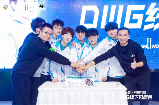 值得一提的是,DWG夺冠第二天,DWG夺冠背后的故事就上了微博热搜。夺冠前5个人睡一间房,训练都要去网吧,被称为“网吧队”,但选手们坚持不懈的电竞初心,为梦想不断的努力,也是感动了所有LPL玩家,直呼DWG是可敬的对手。现场,网鱼网咖CEO董寅鸣、副总裁庄毅为DWG送上了祝贺蛋糕,恭喜他们在S10取得好成绩,并欢迎DWG明年再来中国,与我们一起再次共度S赛电竞之月。