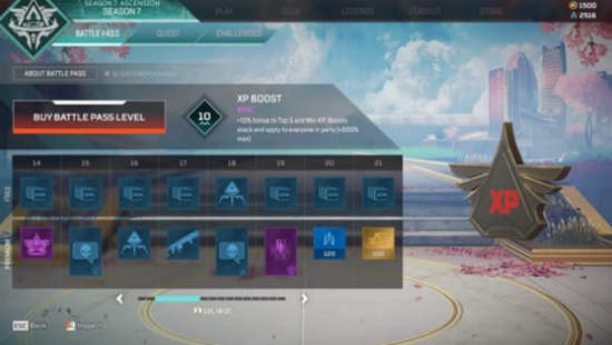 XP挑战现在每赢得10,000XP即可获得1颗星。现在,高级战斗通行证的提升通过增加挑战所需的经验值而提高了50%。提升不会增加潜在的XP收益。