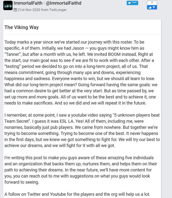 正值Vikin.gg创立一周年之际,战队教练ImmortalFaith发布了一篇长文,简单回顾了过去一年里“维京海盗”从籍籍无名的“网吧队”到声名鹊起,再到如今位列一线的精彩征程。以下为译文。