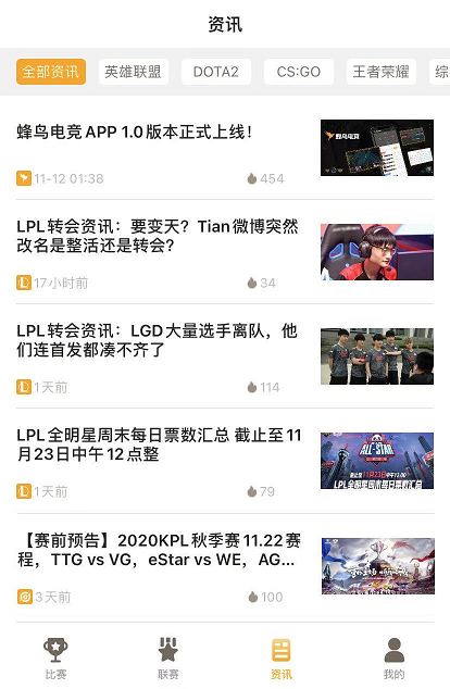 王者荣耀2020KPL秋季赛即将在11月26日开赛,总决赛将于12月19日在重庆举行。今年不分东西赛区后,积分榜排名前十的队伍都将进入到季后赛。这么重要的电竞比赛,蜂鸟电竞比分网(https://www.fnscore.com/)当然会一如既往地全程陪伴大家,为大家带来最新鲜的电竞赛事信息。最近蜂鸟电竞APP 1.0版本正式上线,专注电竞比分赛事数据分析,致力于提供实时比分,赛事直播,比赛数据,新鲜资讯,用户交流的电竞社区,让大家在一款应用内,即可纵览全球热门电竞,享受畅快的观赛体验。关注心仪的比赛还会有推送提醒,不再错过精彩时刻。那么,为什么大家都喜欢用蜂鸟电竞比分APP(https://www.fengniao007.com/)看比赛呢?