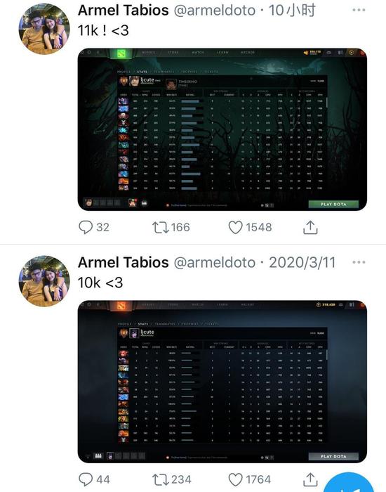 在近期的赛事间隙,职业选手们也是没有懈怠,都在一刻不停地提升自己。25日TNC中单Armel在社交媒体宣布他的天梯分已经到达了11,000分,这使得目前的TNC在一号位Gabbi之后有了第二位万一选手。