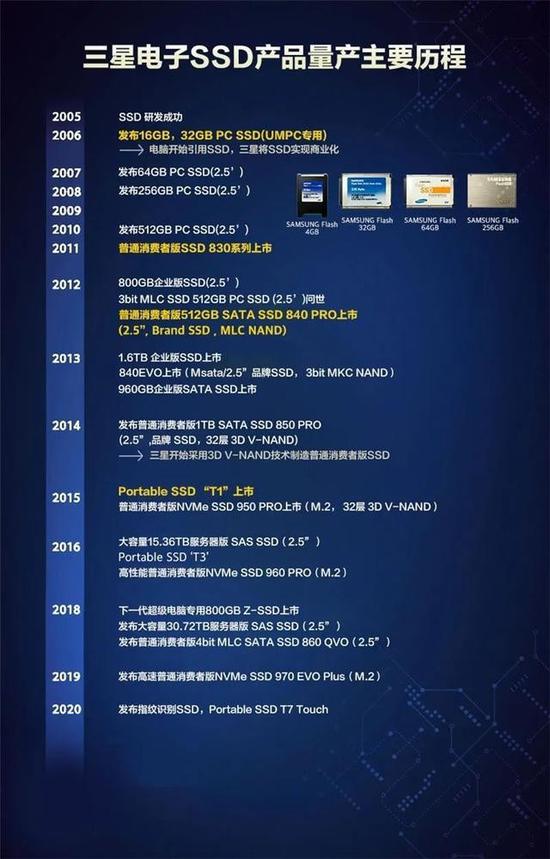 今年4月29日,三星存储产品官方微博发布文章,介绍了三星SSD的发展历程。官方指出,2005年三星SSD研发成功,2006年三星电子实现了SSD商业化,从此进入了SSD的新时代。