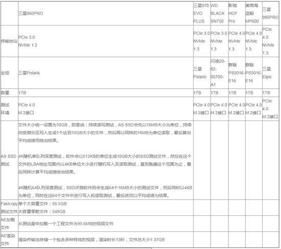 没有对比就没有说服力。在这里选择三款PCIe3.0 1TB SSD(三星960PRO、三星970EVO PLUS、WD BLACK SN750),三款PCIe4.0 1TB SSD(影驰HOF Pro、美商海盗船MP600、三星980PRO)进行了多项测试对比,一起来看看对比结果吧!