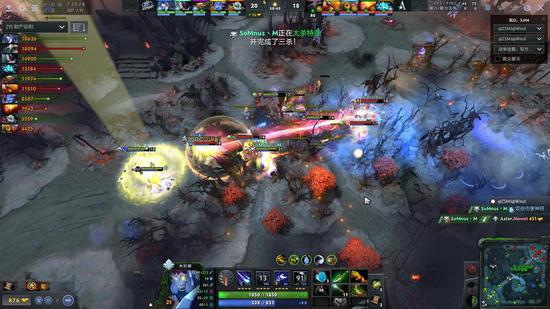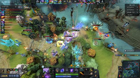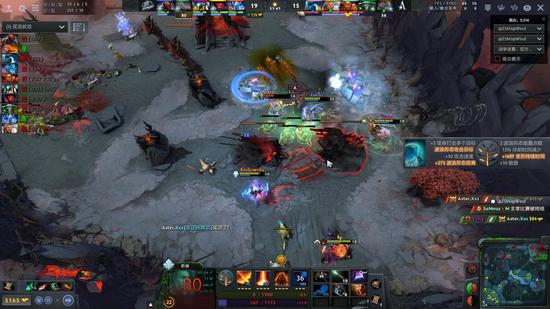 随后不久虚空和土猫周旋Aster赶来偷袭把虚空击杀,全能也被大恶魔击杀,Aster拿下一代盾,但是推进节奏又被发条买活挡下,经济依旧紧紧咬死。